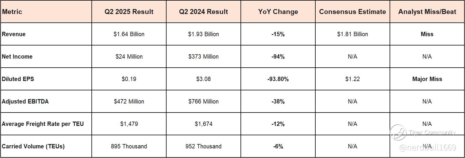 ZIM Integrated Shipping Services (ZIM) reported its fiscal Q2 2025 earnings on August 20, 2025, which was characterized by a significant year-over-year drop in profitability and a substantial miss on analyst consensus for the bottom line.
