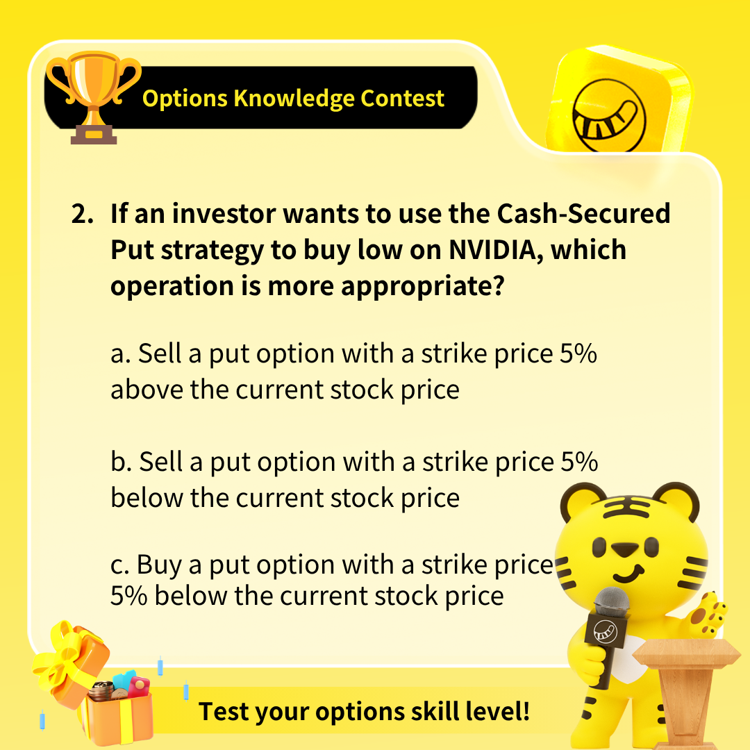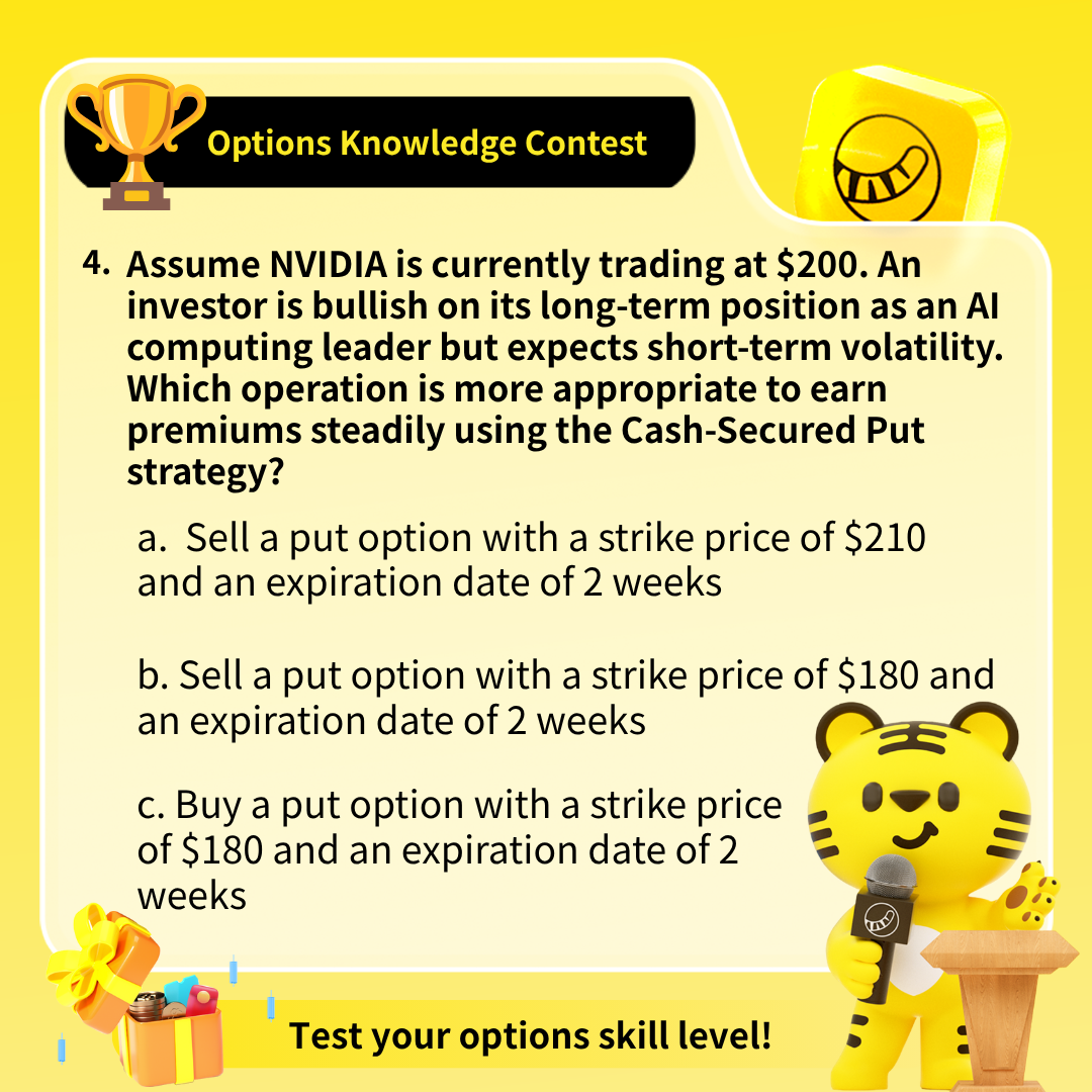 Want to test your understanding of the Cash-Secured Put strategy and trading opportunities in NVIDIA? Join the quiz below to solidify your options knowledge and stand a chance to win Options Handbooks and USD 5 options vouchers~