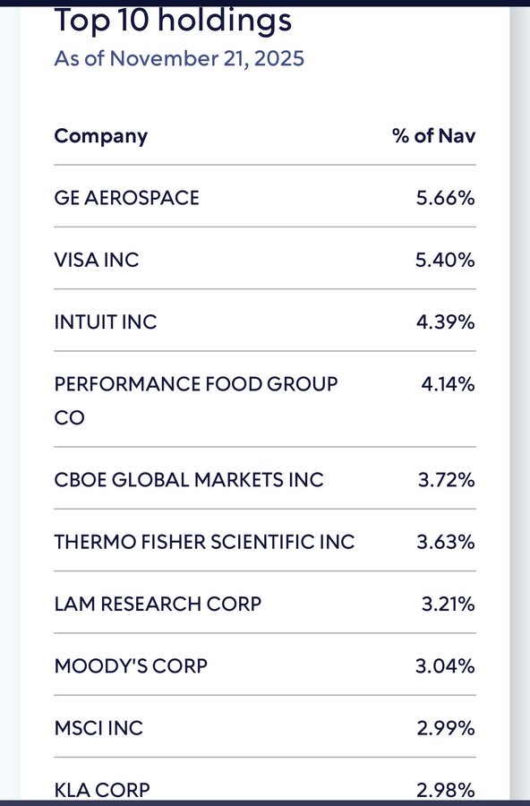 $GE Aerospace(GE)$ $Visa(V)$ $Intuit(INTU)$ $Performance Food(PFGC)$ $Cboe Global Markets, Inc(CBOE)$ $Thermo Fisher Scientific(TMO)$ $Lam Research(LRCX)$ $Moody's(MCO)$ $MSCI Inc(MSCI)$ $KLA-Tencor(KLAC)$