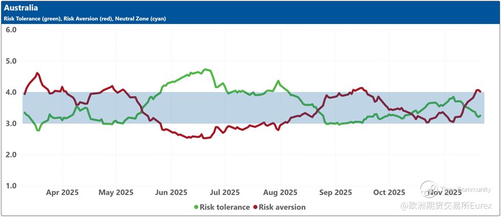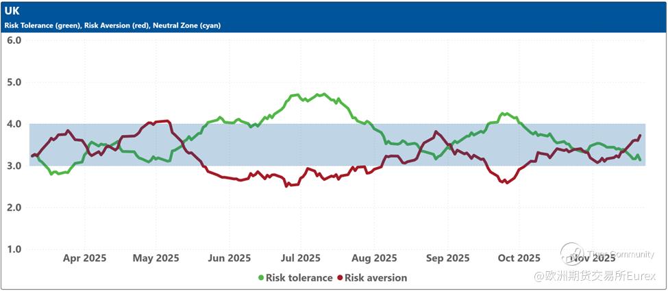 The blue shaded zone between levels 3 and 4 for both indicators signifies a reasonable balance between the supply and demand for risk in the market. When both lines remain within this blue zone, the market is considered ‘emotionally’ stable. However, when both lines move outside this zone, the significant imbalance in demand and supply for risk can lead to overreactions to unexpected news or risk events.