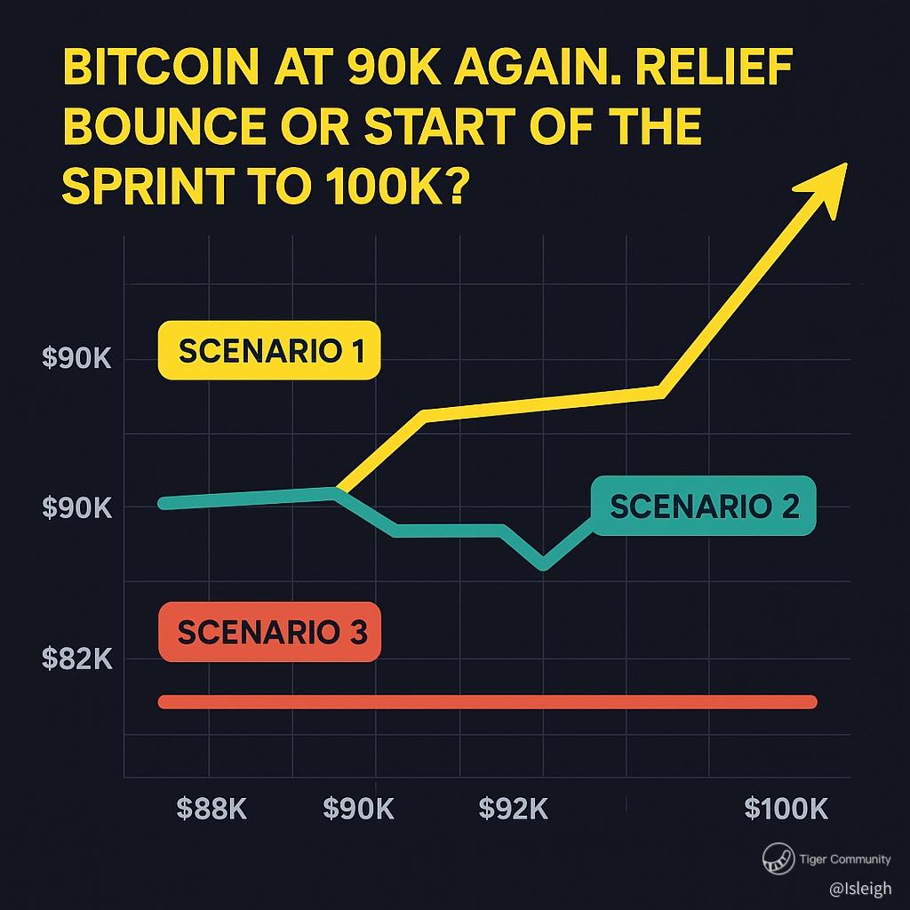 Bitcoin at 90K again. Relief bounce or start of the sprint to 100K