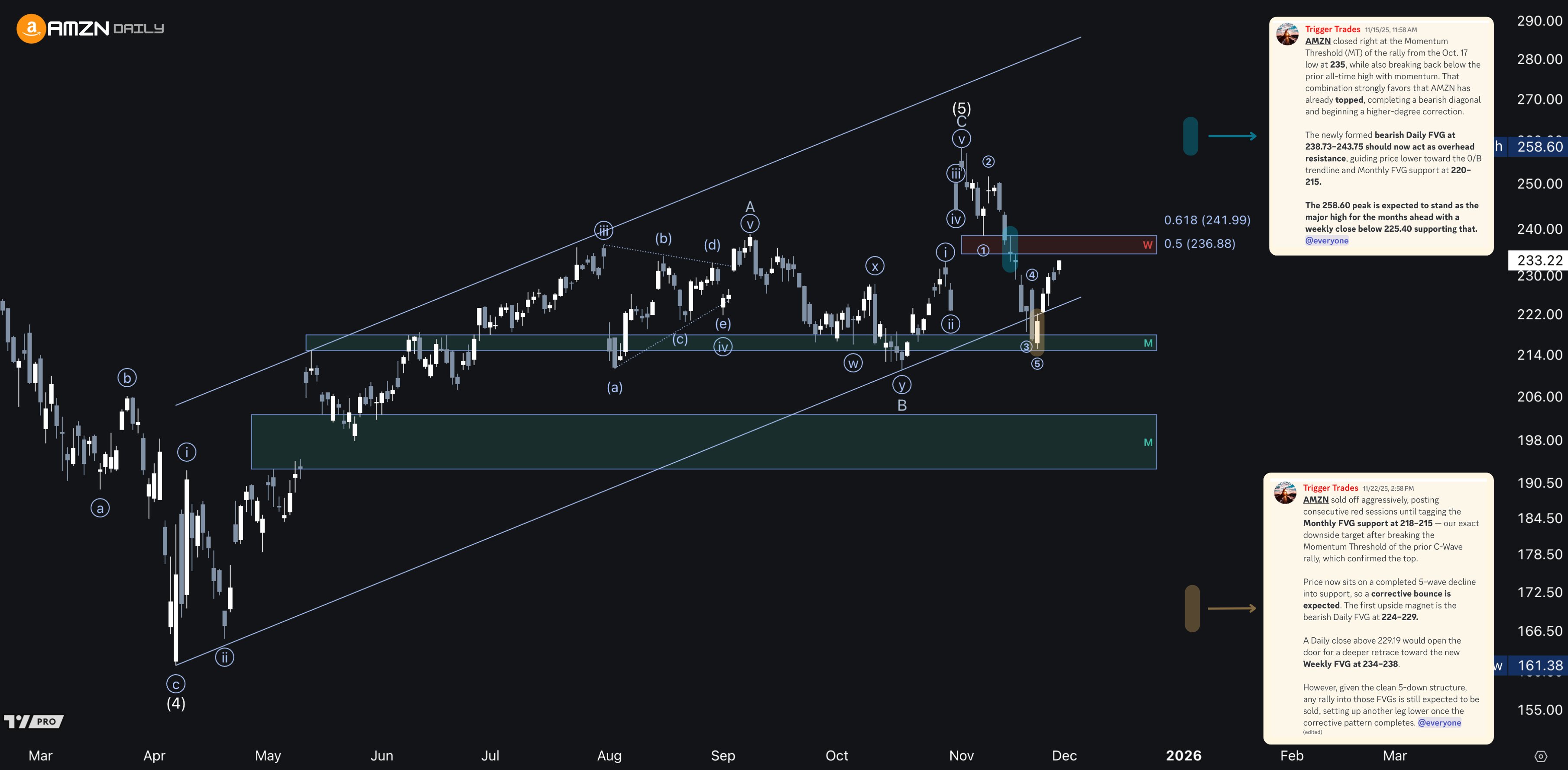 AMZN Rejection Signals a Major Top: Bearish FVG Now Targeting 220–215