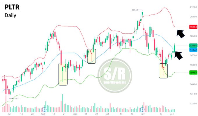 PLTR Eyes Upper Bollinger After Hammer Reversal