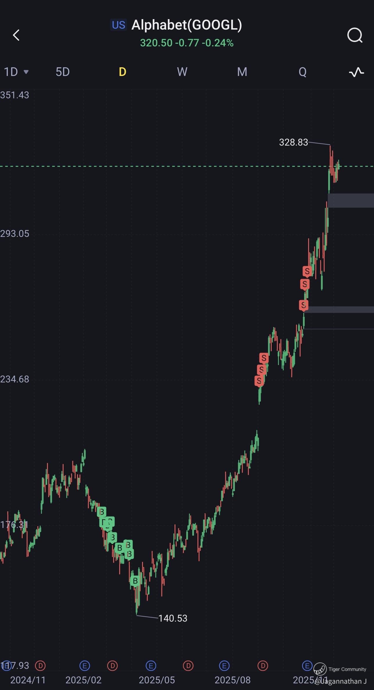 Reason is have held Google for close to 6 months to live from 140 to 240 but the stock mived from 240 to 320 in months that's the difference and reward