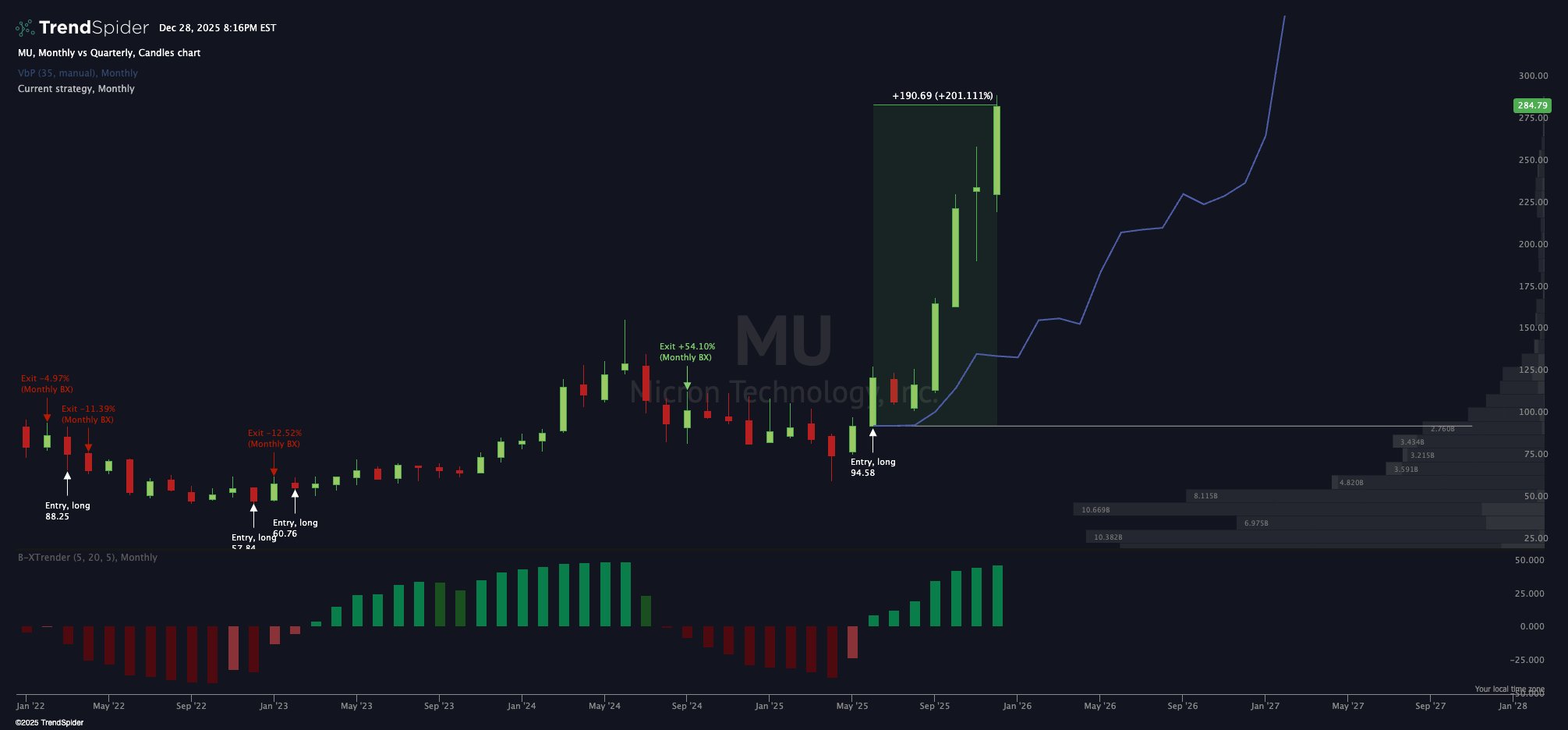 MU is up 200%+ in 7 months, almost 2x what my model expected.