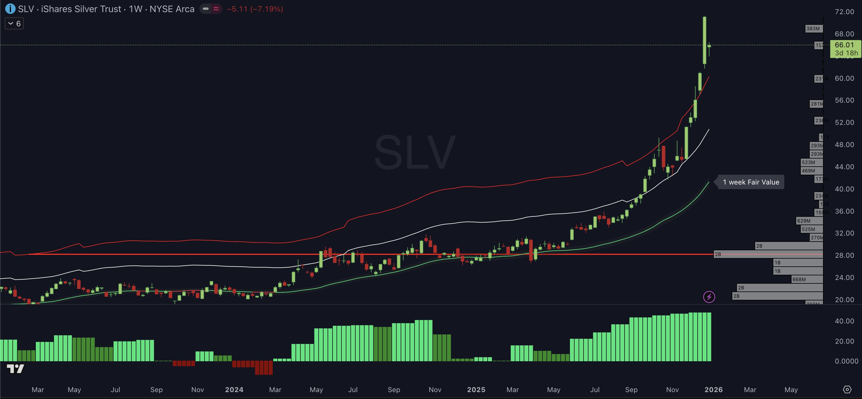 Monthly BX has been in a bull cycle since March 2024 and $SLV is now +190%, trading well above the 2x deviation bands.