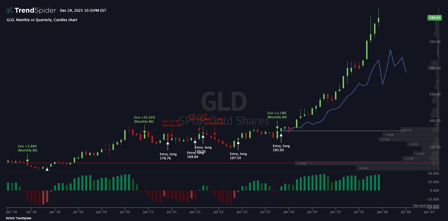 GLD is up 117%+ since Monthly BX confirmed a bull cycle in Nov 2023.