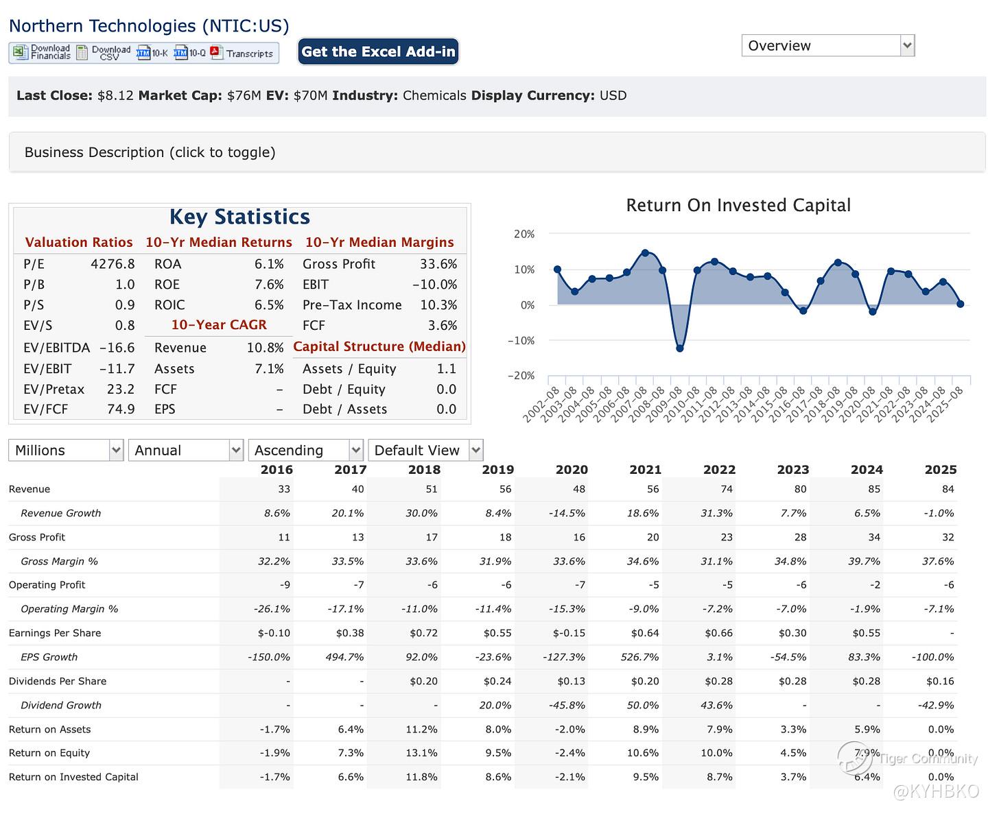 NTI maintains a gross profit margin of 33.6% based on a 10-year median, while its free cash flow (FCF) margin stands at 3.6%. Despite a compound annual growth rate (CAGR) of 10.8% in revenue over the past decade, the company has not achieved breakeven during this period, according to its financial data.