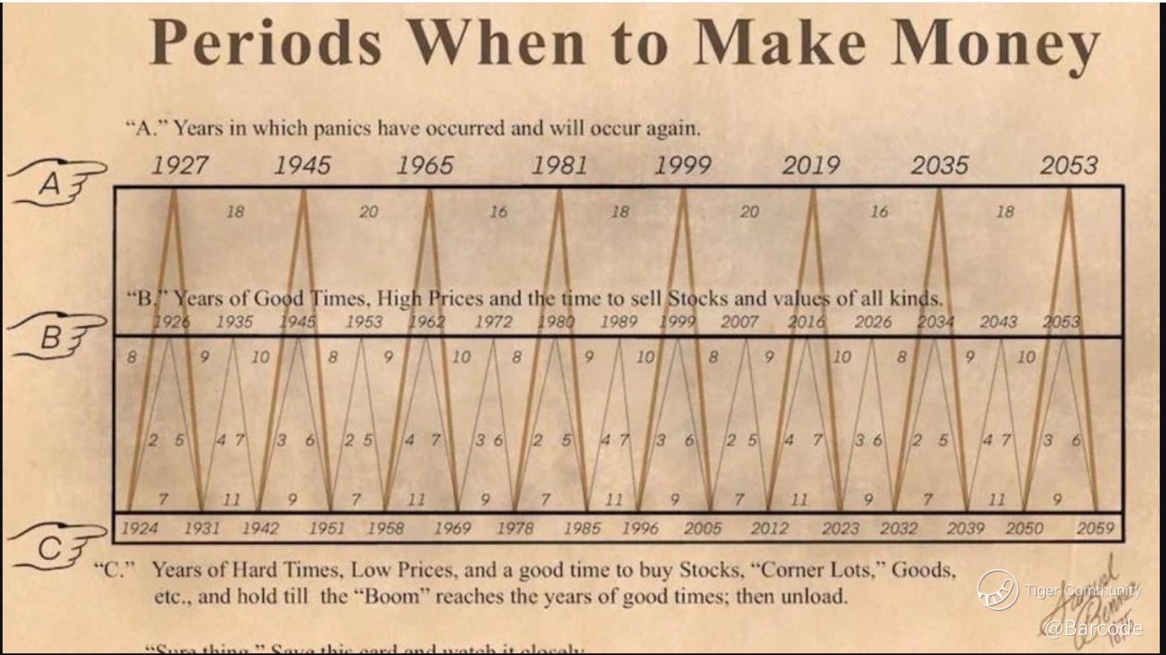 The Benner Cycle divides time into repeating phases: panic years, good times to sell, and hard times to buy. Its appeal lies in visual symmetry. Its weakness lies in precision and causality.