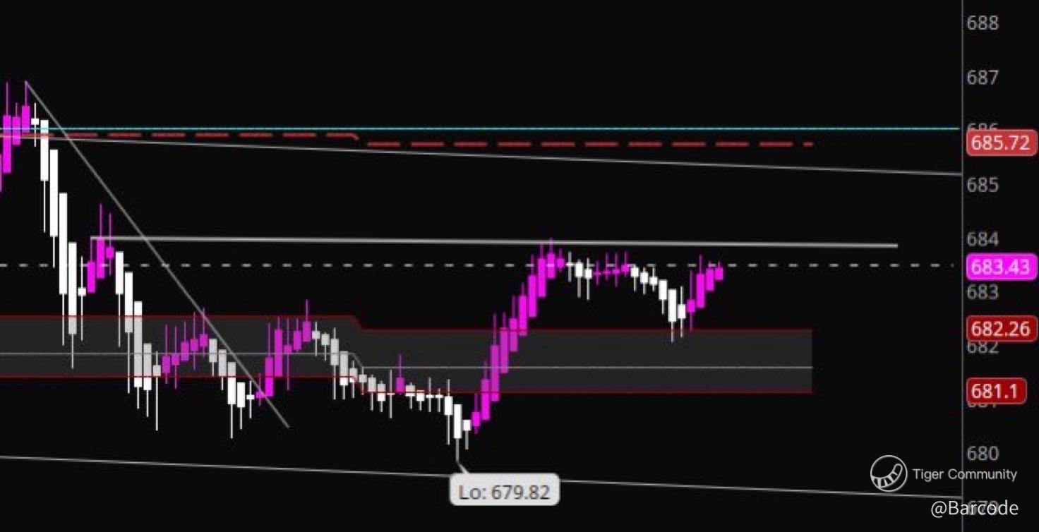 Support sits at $680. Acceptance above $684 sustains the upside structure. Sustained trade below $680, paired with rising volatility and gamma decay, would invalidate the current thesis.