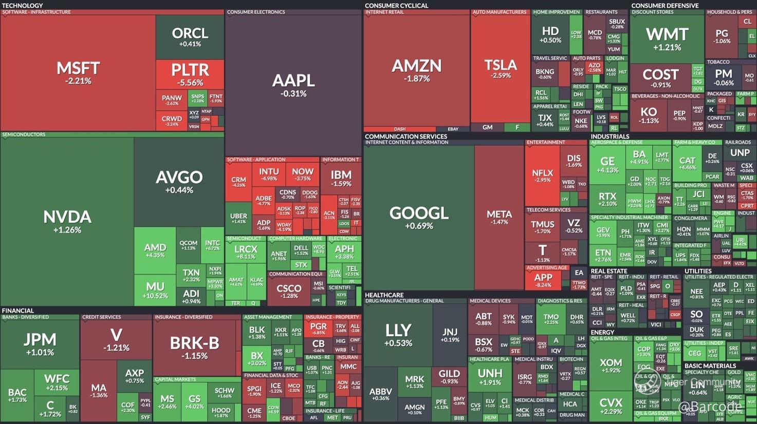 The S&P 500 last printed 6,858.47, up +0.19%. The Dow Jones Industrial Average led with +0.66% to 48,382.39. Small caps materially outperformed, with IWM +1.06% to 248.78, while the Nasdaq Composite lagged slightly at -0.03% to 23,235.63. This is not divergence by accident. It reflects rotation, hedging preference, and selective participation rather than broad risk aversion. Semiconductor leadership provided an important counterbalance, reinforcing cyclicality and internal strength even as growth hedging persisted.