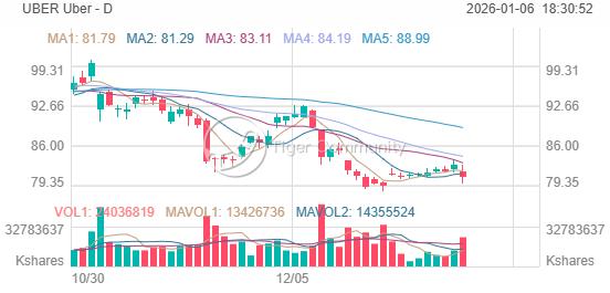 As of 2026-01-06, UBER closed at $80.74, down 2.56% on the day. The stock is trading ~20.8% below its 52-week high of $101.99.