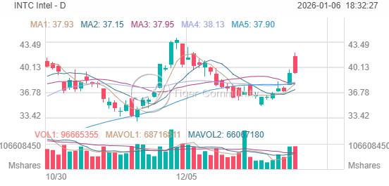As of 2026-01-06, INTC closed at $39.37, down a marginal -0.03%. The stock remains ~10.6% below its 52-week high of $44.02.