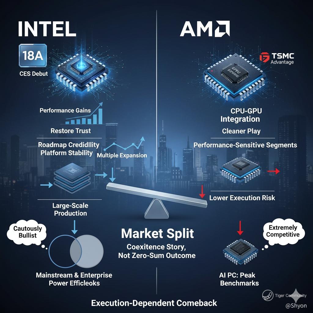 Overall, I view Intel's comeback as possible but execution-dependent. I'm constructive on the direction, encouraged by 18A, but I wouldn't chase the stock purely on momentum. For me, Intel becomes more attractive on pullbacks or after a few quarters of consistent delivery, while AMD remains the cleaner, lower-execution-risk AI PC play in the near term.