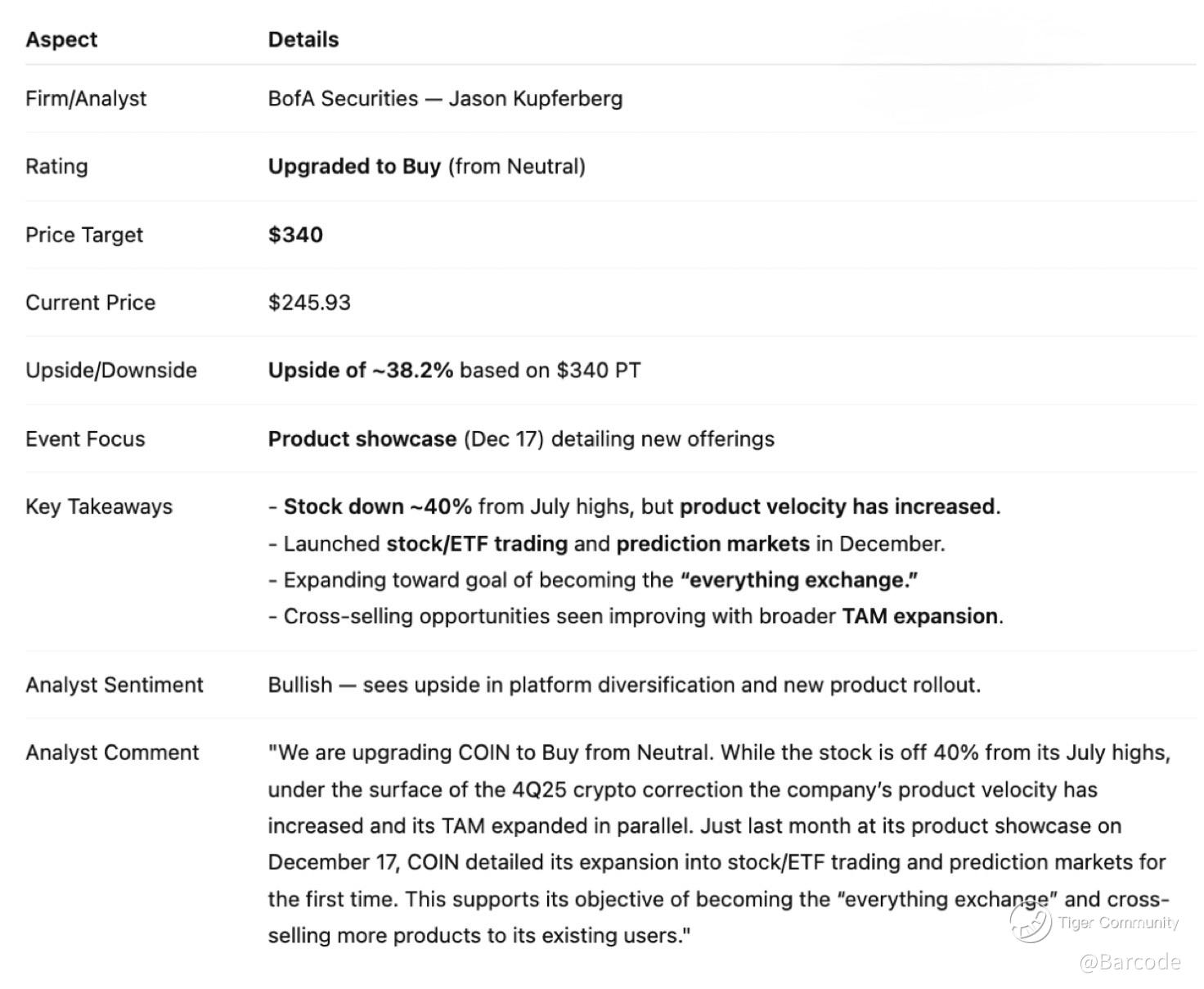 🚨📰 JUST IN: $COIN 🟢 BofA upgrades to BUY | PT $340