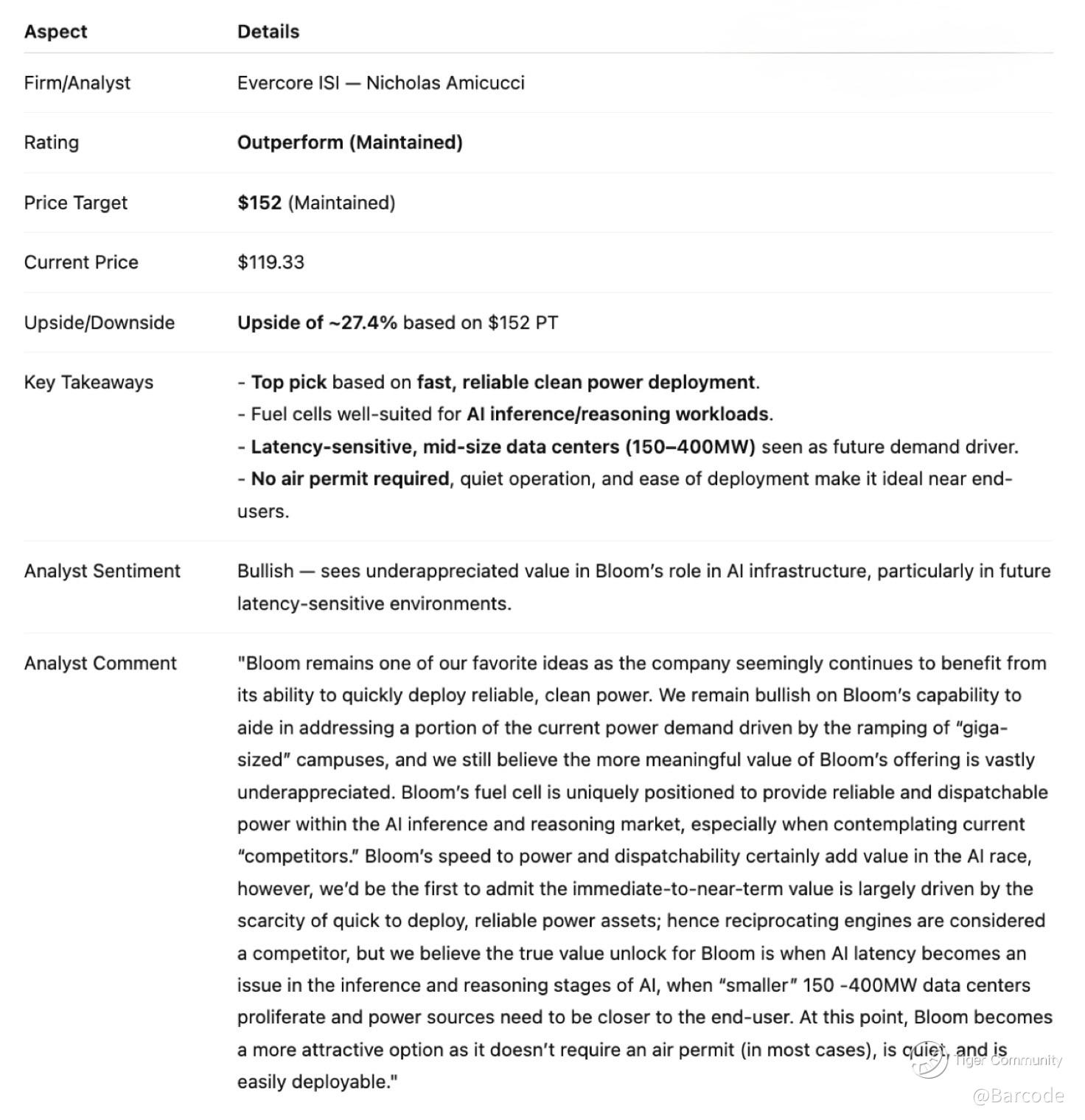 Evercore’s core point resonates with me. As AI inference scales and latency becomes a constraint, speed-to-power and deployability become strategic advantages. Bloom’s ability to avoid air permits in most cases, operate quietly, and deploy quickly makes it increasingly attractive as compute moves closer to users.