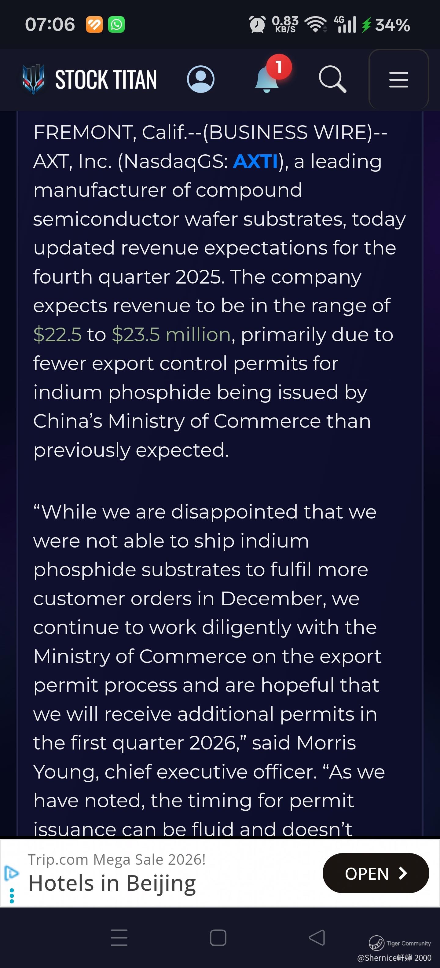 - AXTI received export control delays and expect to recognize the revenue Q1 2026.
