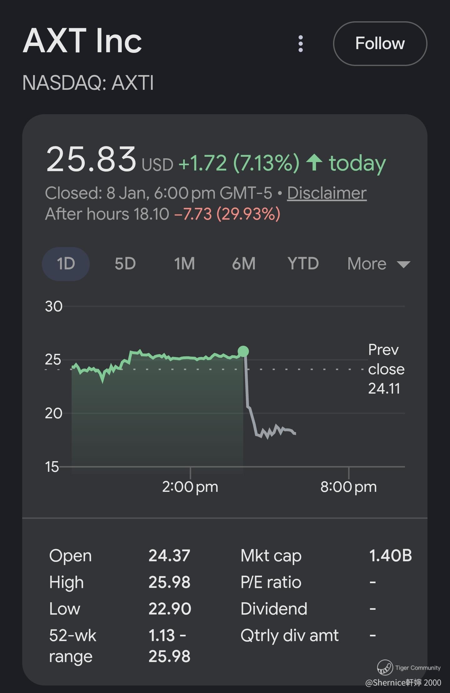 $AXTI drops 29.54% AHs on: