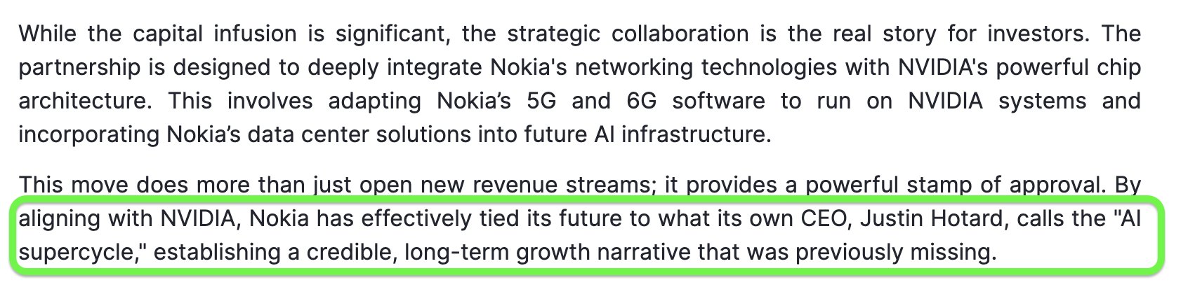> CEO says NOK's growth is tied to the "ai supercycle"