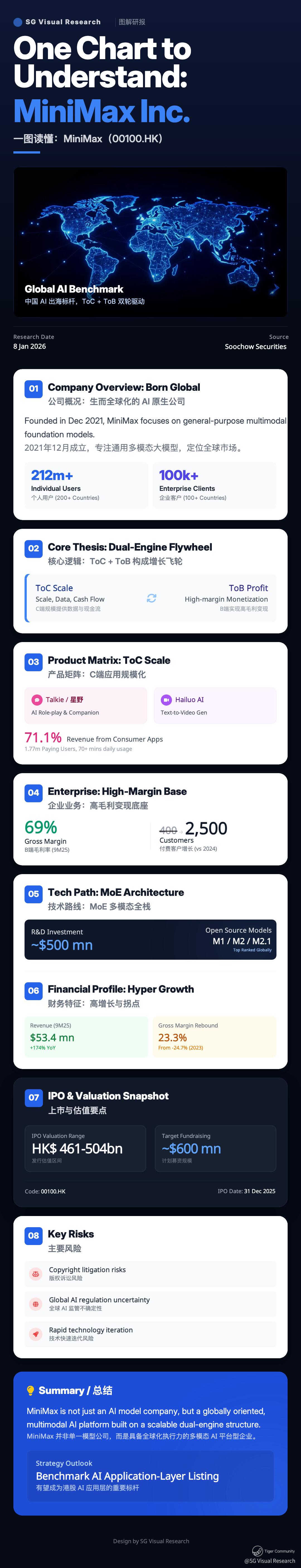MiniMax has just gone public, but this research note isn’t about the IPO hype. What stands out is an AI company that already runs a dual-engine model: consumer apps for scale and data, enterprise services for margins — with most users coming from overseas. The report looks past the listing event and asks a more practical question: how an AI company turns global usage into sustainable revenue after going public.