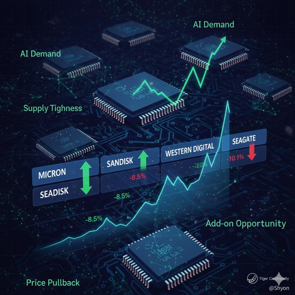That said, I also recognize this sector is inherently cyclical and volatile. Some of the pullback reflects profit-taking after crazy gains, and there are still pockets of supply/demand imbalance depending on segment and product — for example NAND oversupply dynamics persist in certain channels even as enterprise SSDs tighten. I personally don't see this as a sign that the shortage logic no longer holds, but rather that markets oscillate between pricing in future growth and short-term repositioning. I've seen enough data showing continued tight high-bandwidth memory and NAND allocations driving price increases, which reinforces a longer-term narrative even if near-term sentiment cools.