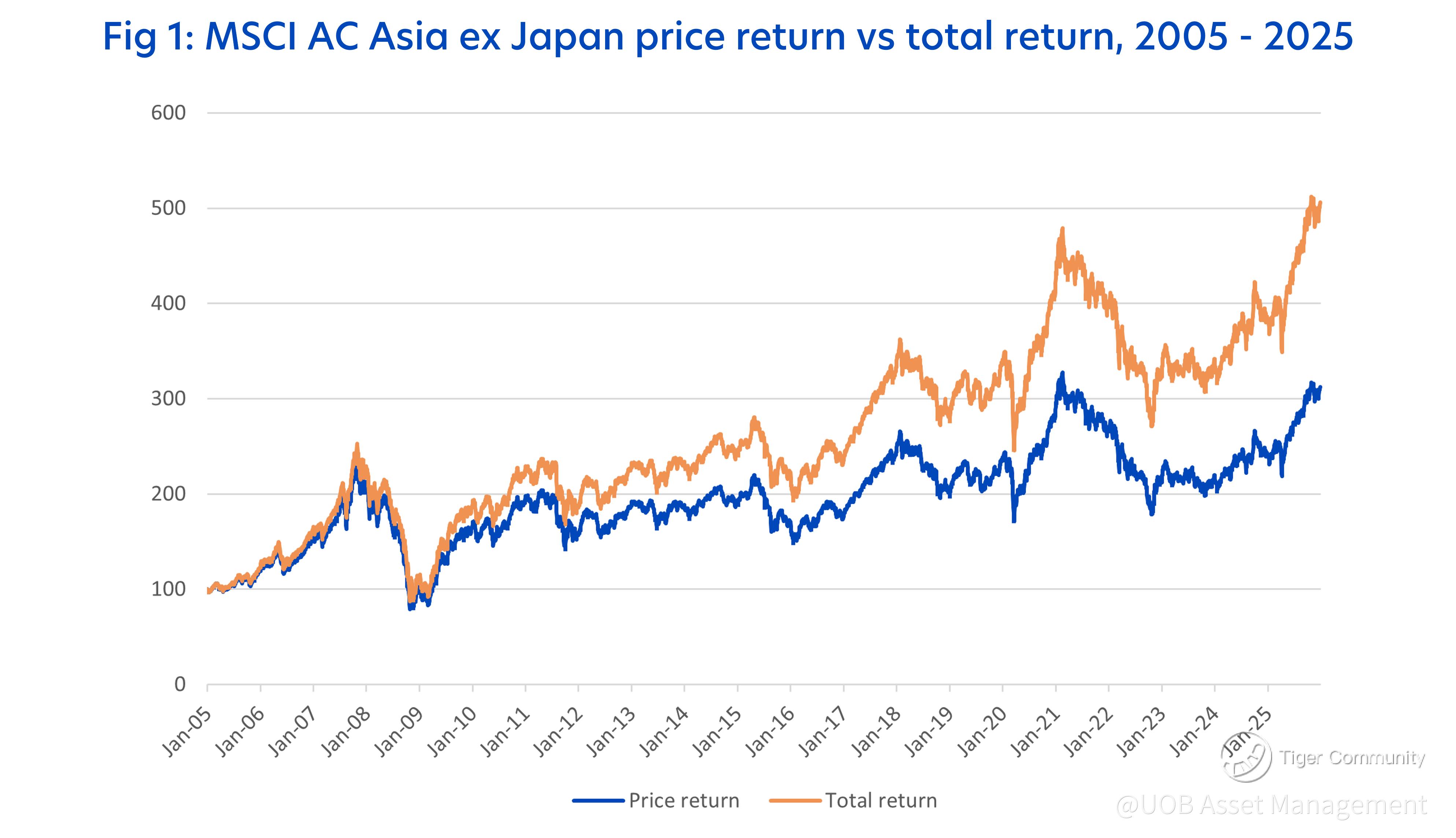 Source: Bloomberg, based on the MSCI AC Asia ex Japan Index from Jan 2005 to Dec 2025. Past performance is not indicative of future performance.