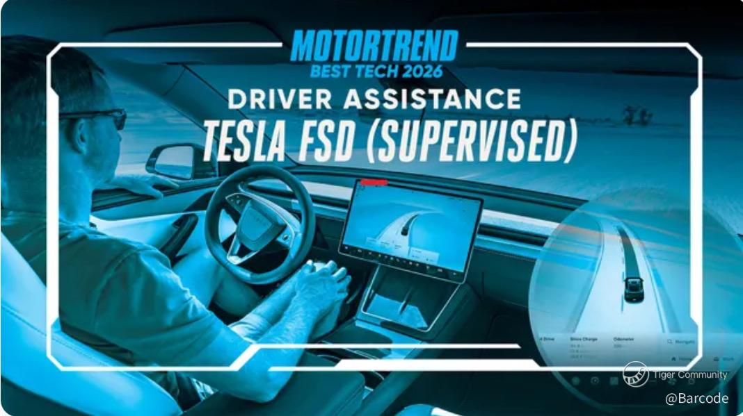 Tesla’s FSD (Supervised) won MotorTrend’s Best Driver Assistance Award for 2026. MotorTrend stated, “After years of criticizing Tesla’s erratic driver assistance tech, we’ve been converted into acolytes by the latest release, V14. FSD now delivers a hands-off experience that routinely navigates from driveway to parking spot, and back again, all while ensuring the driver’s attention stays focused on the road.”