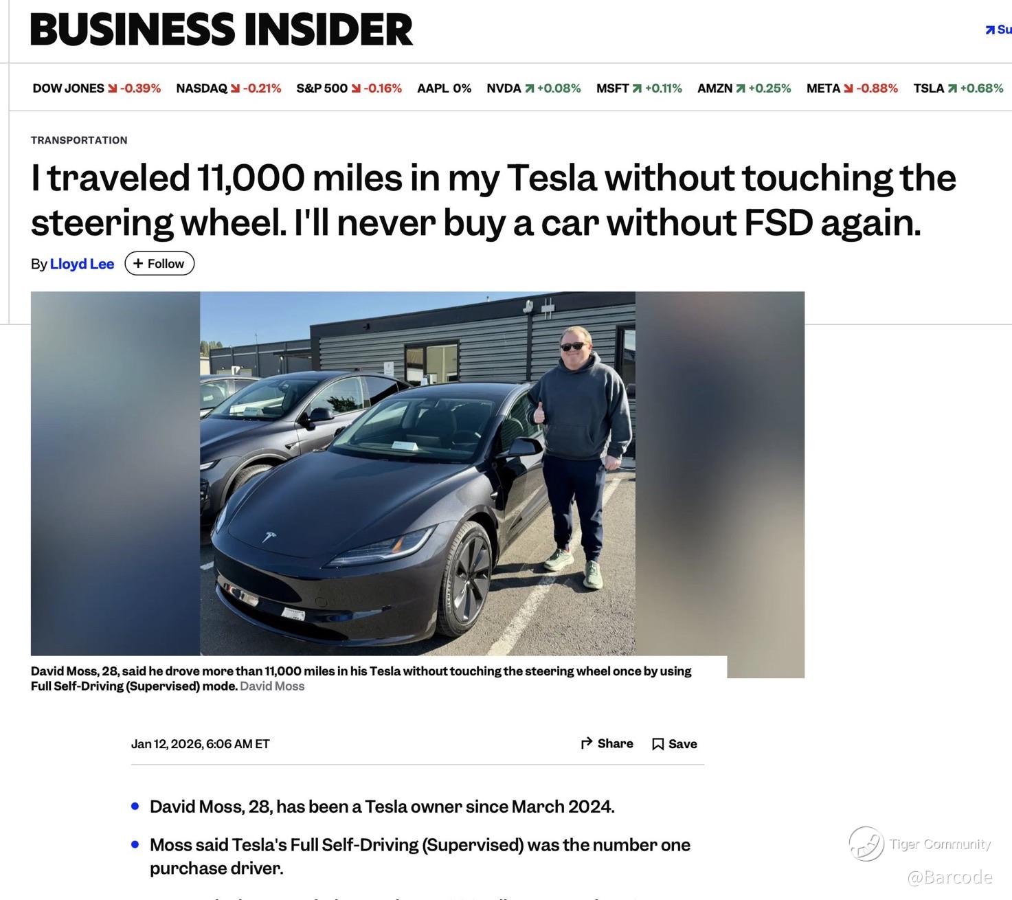 Business Insider reported a Tesla owner who drove 11,000 miles using FSD (Supervised) without touching the steering wheel and said, “I’ll never buy a car without FSD again.” He called FSD the number one purchase driver, which is exactly the kind of real-world software lock-in and pricing power that supports Tesla trading on technology multiples rather than auto cycles.