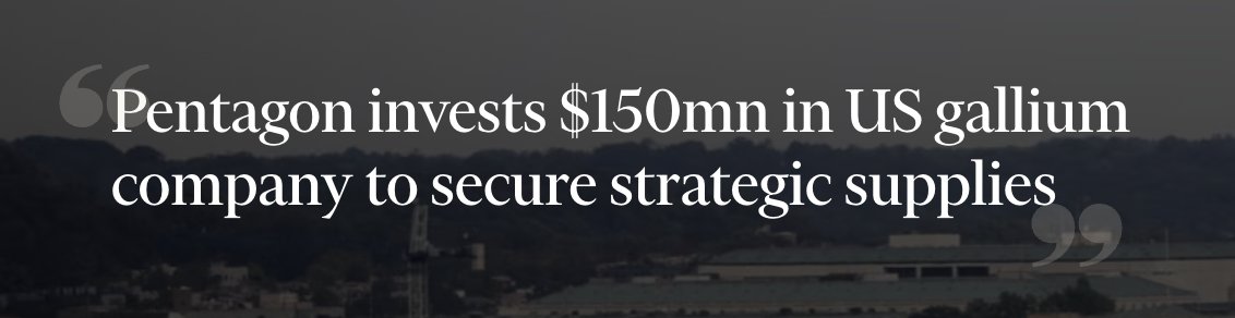 > yesterday, pentagon invested $150M in a US gallium company to "secure domestic supply"