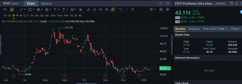 Spillover effects quickly lifted crypto-related ETFs.The $ProShares Ultra Ether ETF(ETHT)$ jumped over 7.8% overnight and is now up more than 7.9% again in Tiger Brokers’ overnight session.The largest spot Bitcoin ETF, $iShares Bitcoin Trust(IBIT)$ , gained over 3.2% overnight, while $CAM ETH(03046)$ surged more than 6.7%.