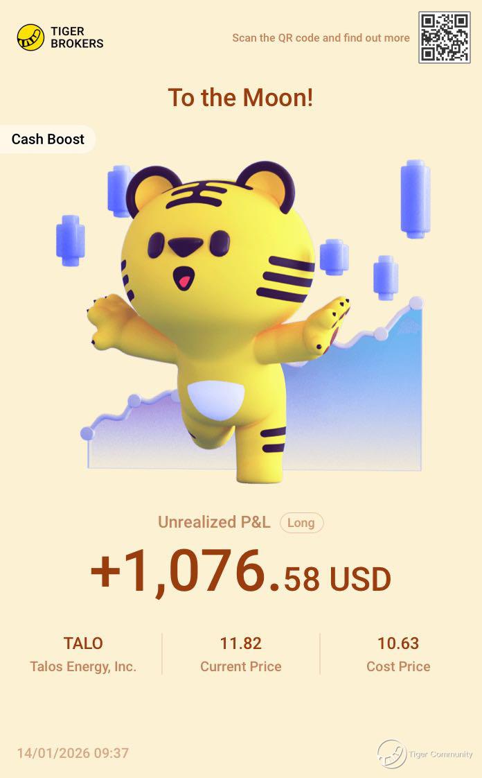 $Talos Energy, Inc.(TALO)$ This run on TALO really hit the sweet spot! The stock’s climbed nicely and the market is starting to pay attention to the space — and these gains feel solid! Still holding to see if it can fly even higher!