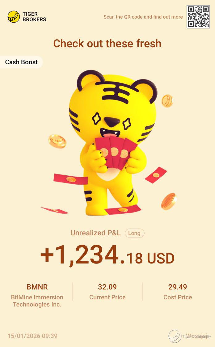 $BitMine Immersion Technologies Inc.(BMNR)$ Crypto has finally started to move up a bit — after three rounds of adding to my positions, I’m finally in profit. 2026 is shaping up to be my year!