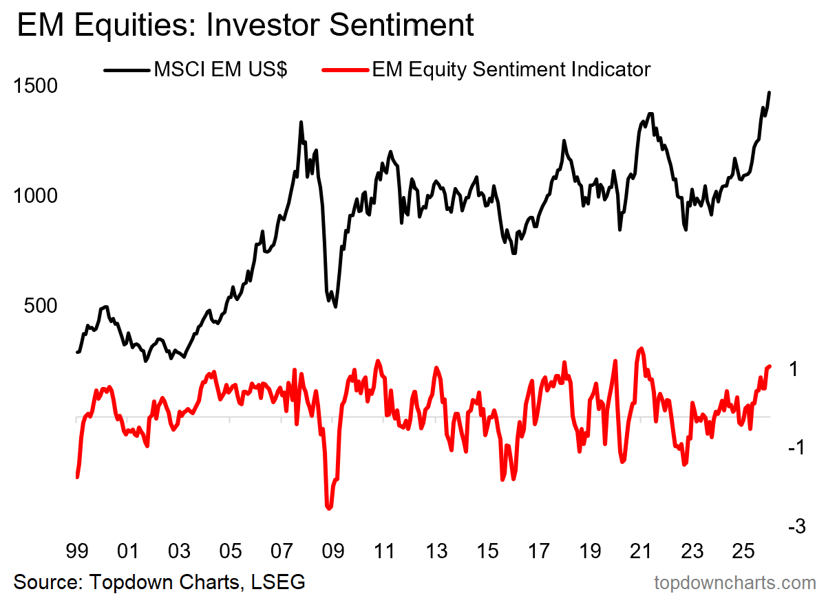 But with the breakouts, tailwinds, and genuine macro-fundamental improvement that we have seen, I have greater confidence that this is a genuine transition out of range-trading and into a new uptrend and bull market for EM equities —— and it’s entirely normal to see sentiment turn bullish; and sometimes extremely bullish during a trend change like this.