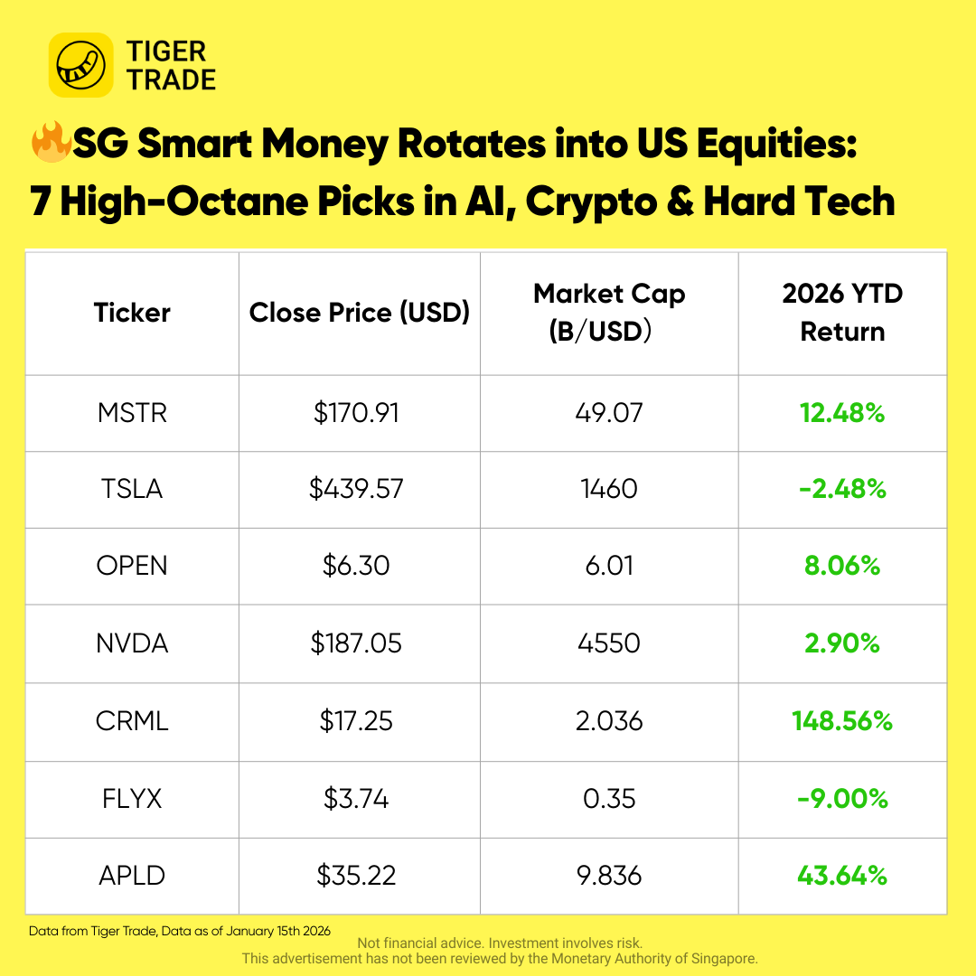 🔥 SG Smart Money Rotates into US Equities: 7 High-Octane Picks in AI, Crypto & Hard Tech
