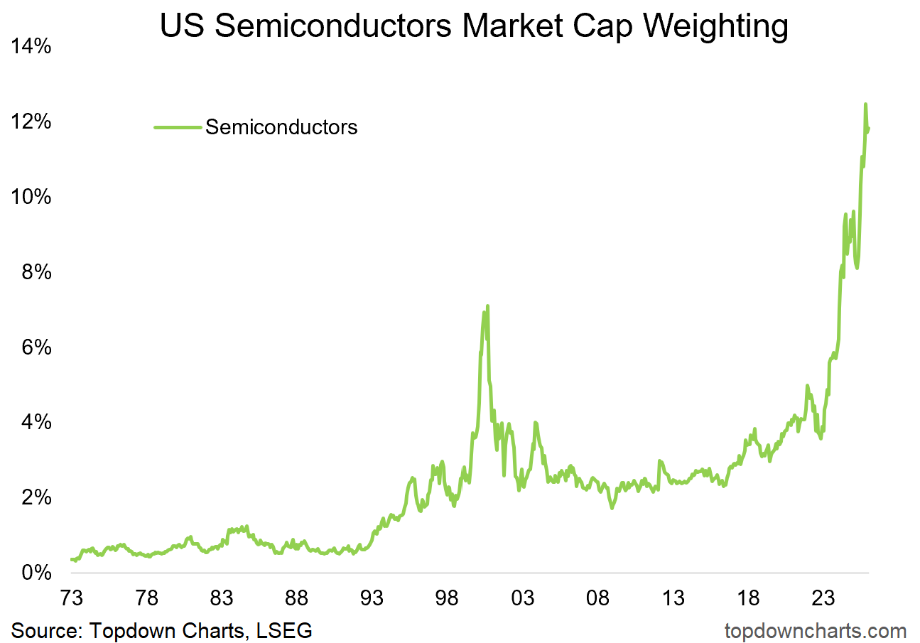 the big beneficiary of the latest wave of capex and indeed of the AI hype bubble has been semiconductor stocks – with that sector’s market cap weight far eclipsing levels seen during the dot com boom. Is it the new normal, or just another cycle of boom and b...?