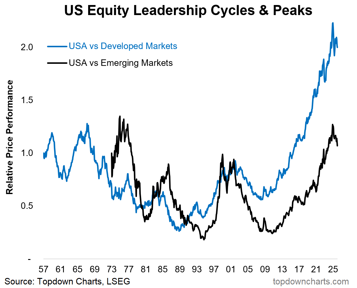 this one shows US stock market outperformance peaking vs DM and EM. All good trends come to an end, and all good cycles do what cycles do.