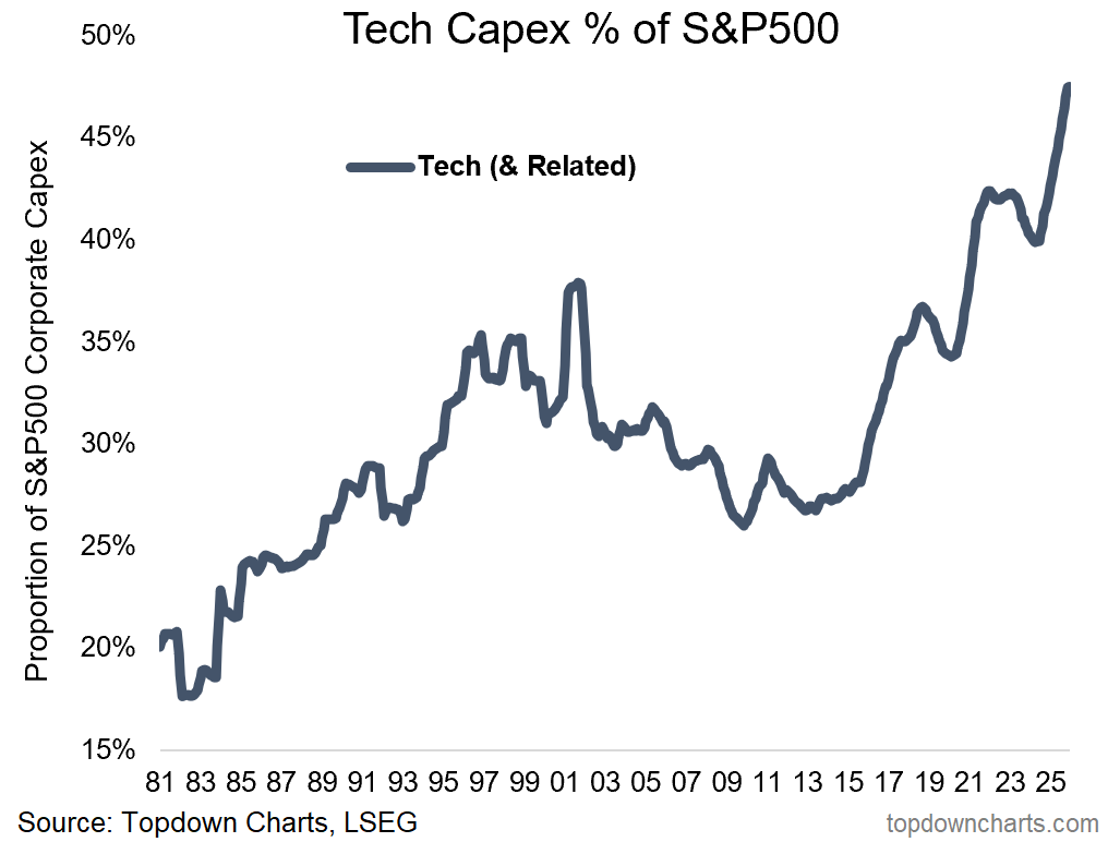 successive waves of capex by tech and tech related stocks have seen a crowding-out of capex vs the rest of the S&P500.