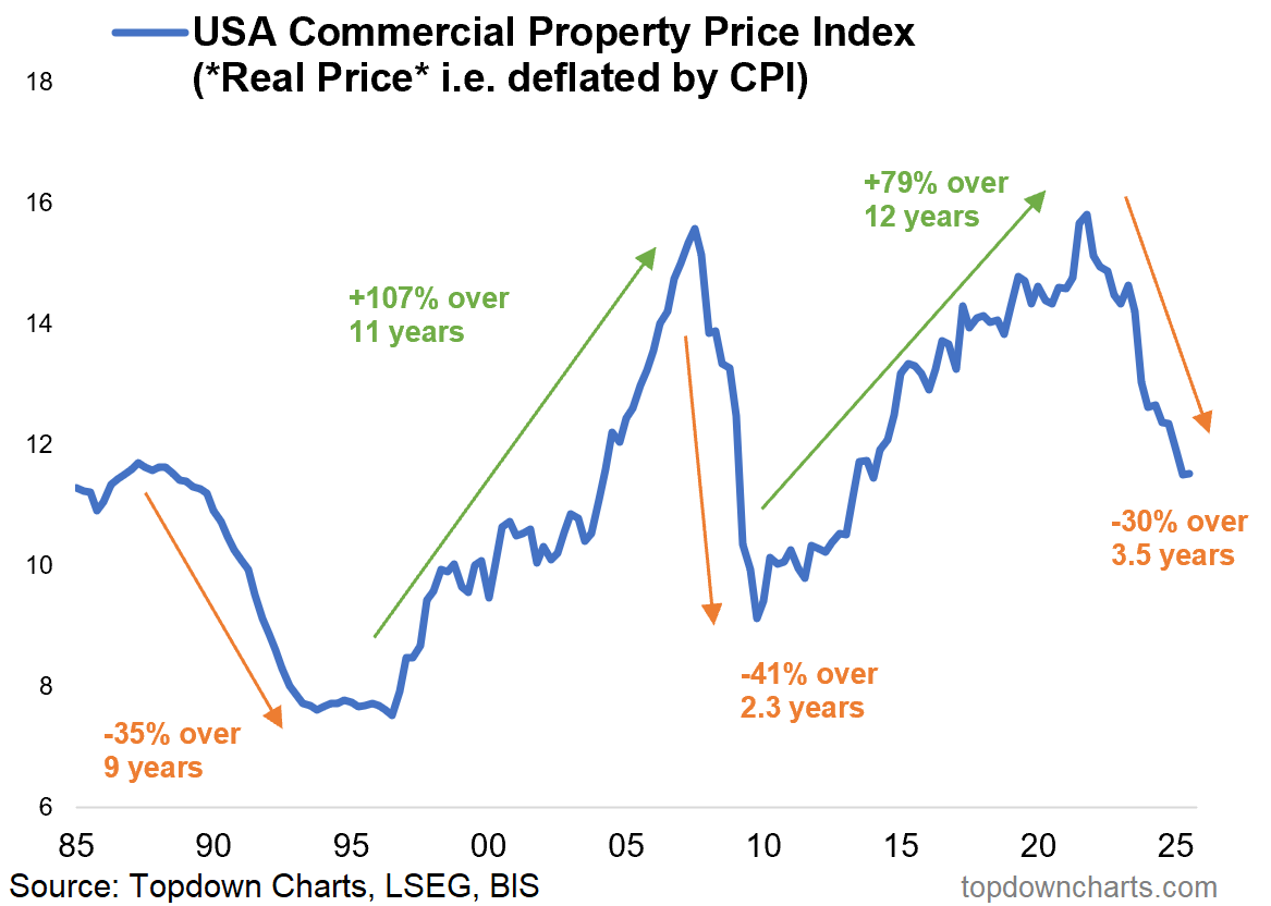 in real inflation-adjusted terms, the CRE downturn has been substantial (-30%) and drawn-out (almost 4 years since peak to initial trough). Some might say that’s “enough” (…downturn done?).