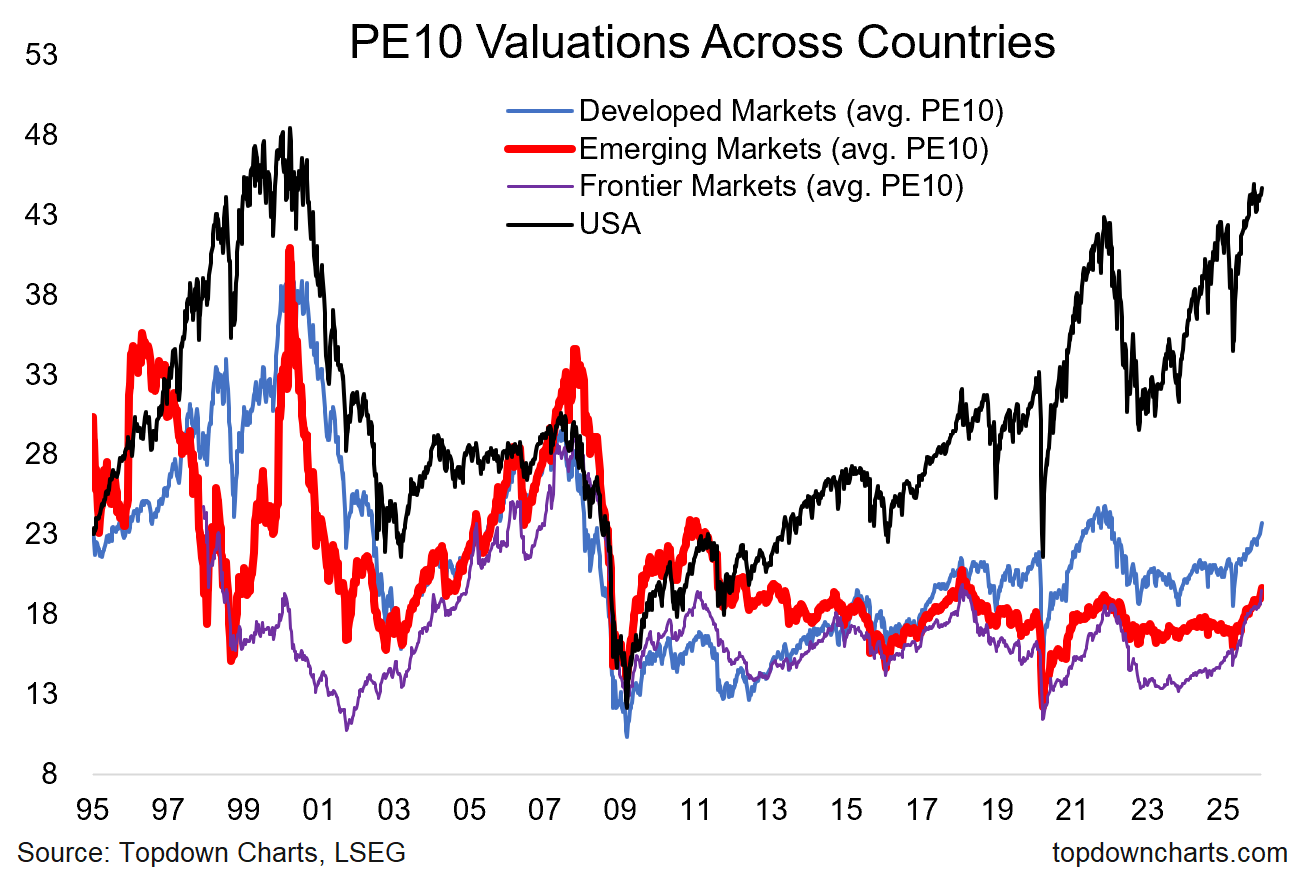 this chart shows how far the US has diverged from global equity valuations, but also the nascent catch-up trade clearly underway.