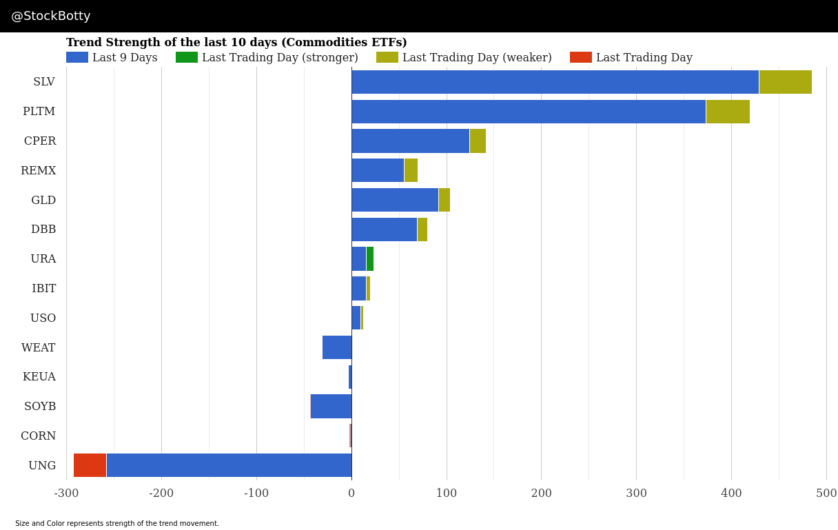 1.Commodities ETFs Strength Trend Meter Bar Chart