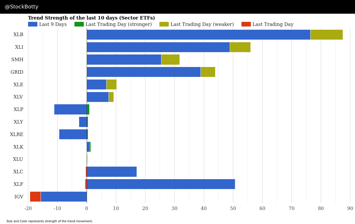 2.Sector ETFs Strength Trend Meter Bar Chart