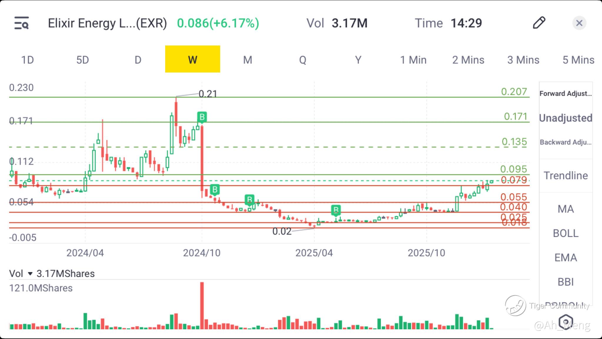 $Elixir Energy Ltd(EXR.AU)$ I have never shared this trade... if you look at the chart below, it was terrible from the moment I bought. Had bought a starting position at 17 cents and the share price quickly collapsed.