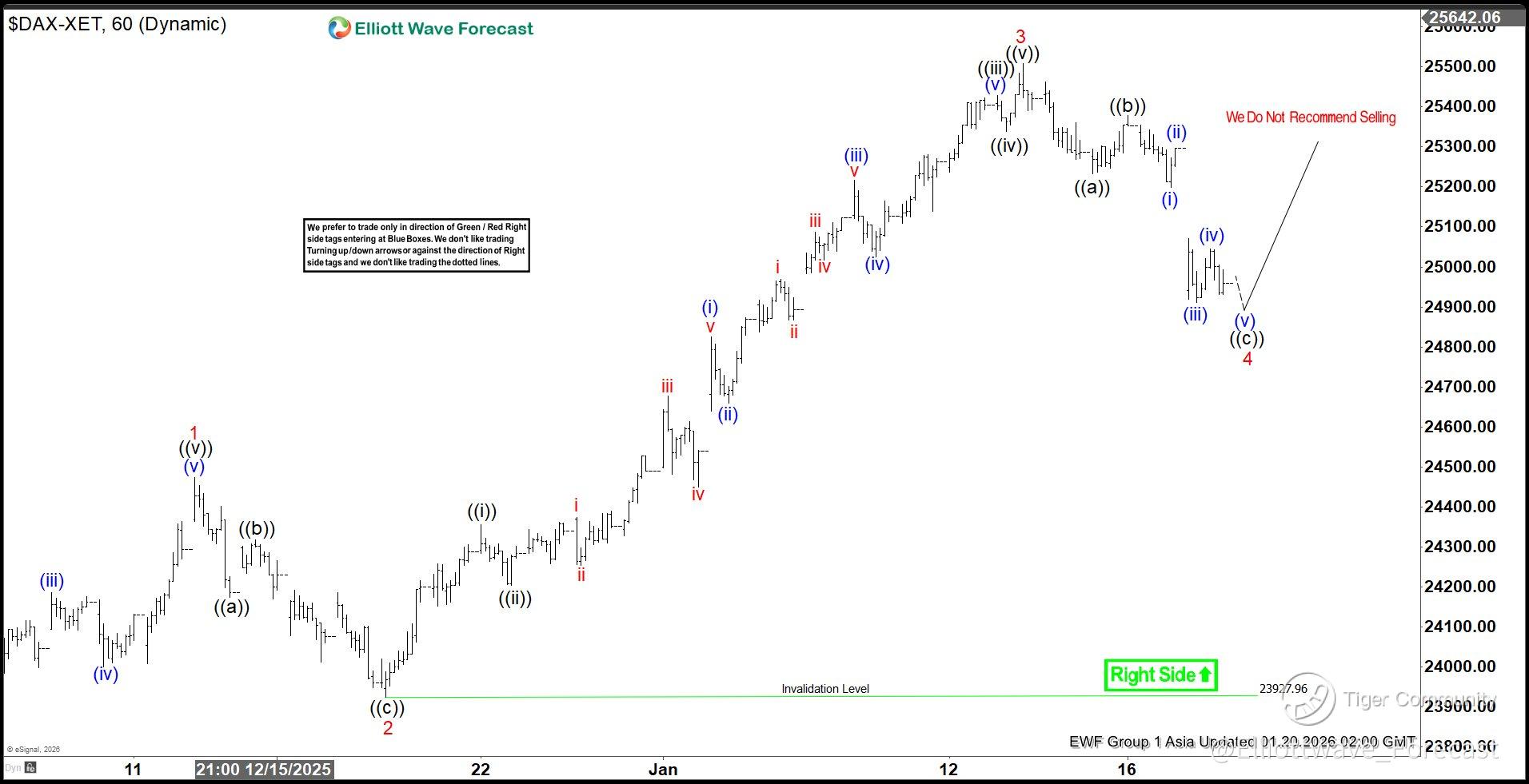 The DAX Index advanced in a clear three-swing rally from the November 21, 2025 low, reaching a new all-time high. Elliott Wave Theory states that a sustained trend typically develops in five waves, not three. The fresh high confirms strong bullish momentum, making it unlikely that the market would conclude its cycle with only three swings.