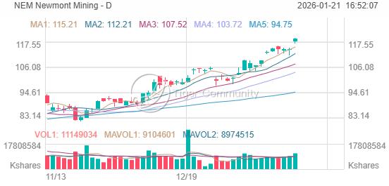 NEM Climbs +4.22% to $118.94, Testing 52-Week High at $119.35
