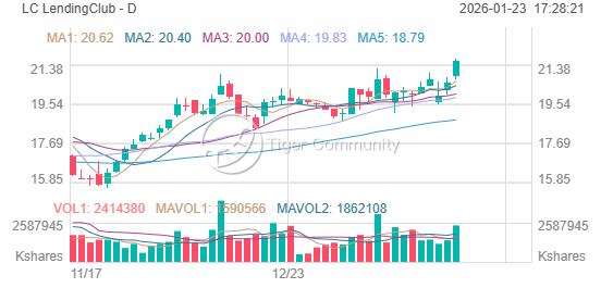 LC closed at $21.58 on Jan 22, up +4.96% (+$1.02), just $0.09 below its 52-week high of $21.67. Volume was robust at 2.41M shares.