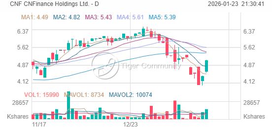 CNF closed at $5.06 on Jan 22, surging +14.74%. This marks a significant move, though it remains -63.6% below its 52-week high of $13.90.