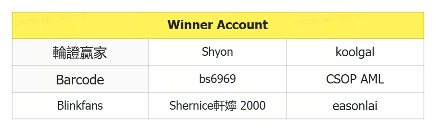 Yesterday's winners: