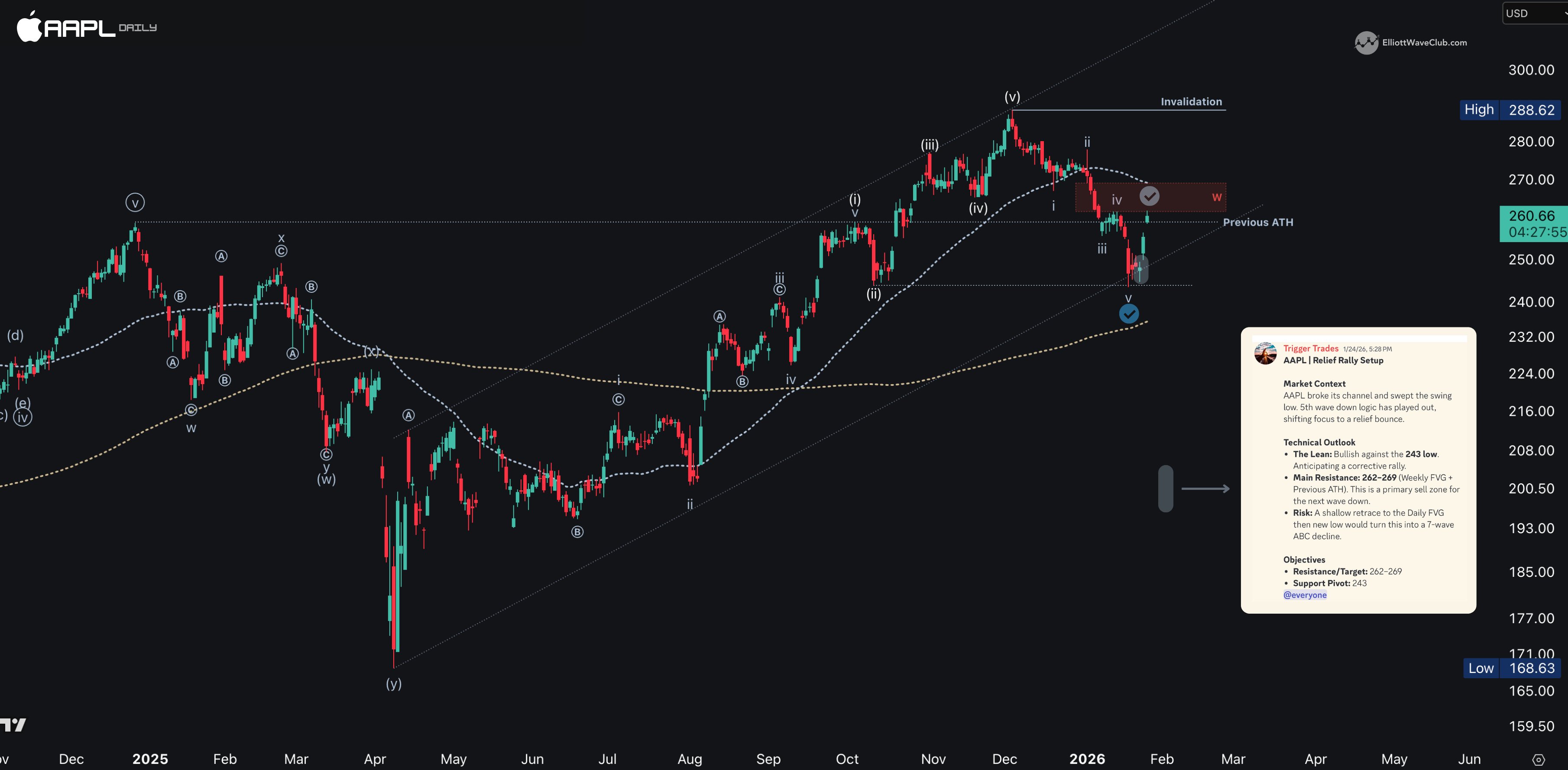 We projected a Apple 5th wave decline to 247-243