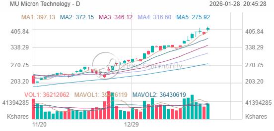 Strong buying was driven by a combination of sector-wide optimism in semiconductors and anticipation of continued demand for high-bandwidth memory (HBM) in AI applications. The stock's significant pre-market jump to $429.45 further fueled intraday confidence.
