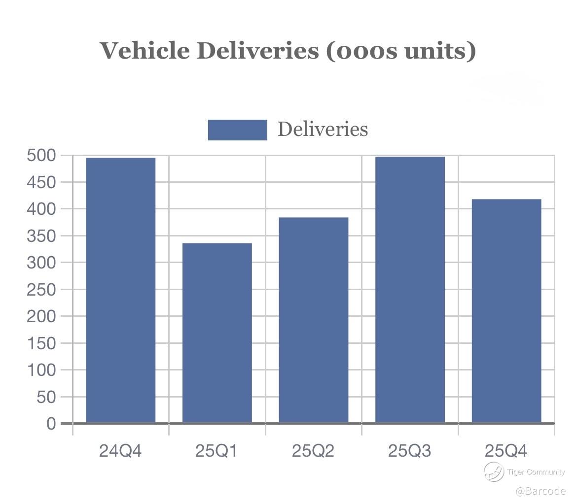 Q4 deliveries ~418K, down ~16% YoY